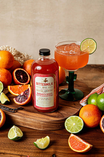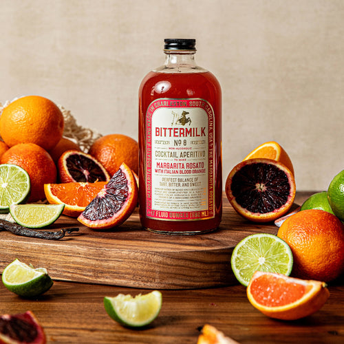 Kick off rosé season with Bittermilk's riff on the most popular warm-weather cocktail, the margarita. Bittermilk No.8 Margarita Rosato is a non-alcoholic mixer that honors the proportions of a margarita, but is built with Italian blood orange and lime with subtle hints of gentian, rhubarb and orange peel, reminiscent of a classic Italian Aperitivo. Bittermilk Margarita Rosato mixes beautifully with tequila, however it truly shines when mixed simply as a non-alcoholic spritz with soda water and ice. A complex, satisfying non-alcoholic cocktail has never been so simple to make.