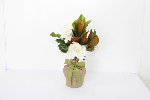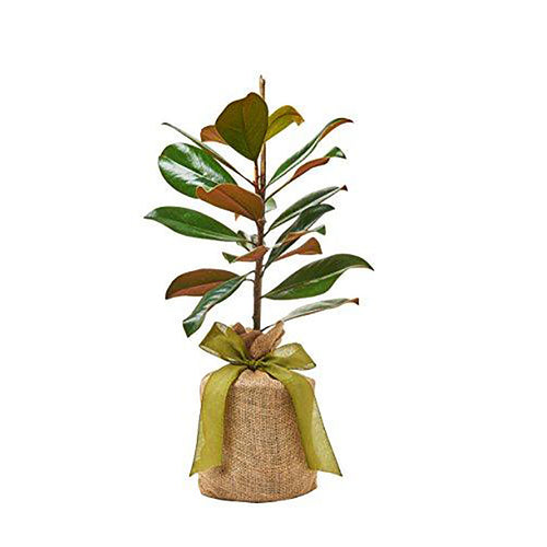 This magnificent magnolia tree is known for its deep green leaves and beautiful, fragrant white blossoms. Each gift tree is beautifully packaged in a 100% natural jute bag with an accompanying soft green ribbon. Care instructions and a personalized gift card are included with each gift tree.
