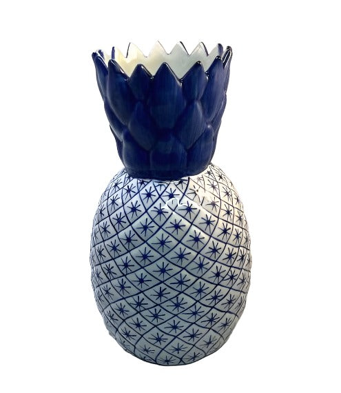 This large Blue & White Pineapple Vase is classically elegant. Its narrow neck allows for easy stem arrangement, making it a must-have for any southern inspired decor. Pineapples have long been cherished in the south as a welcoming symbol.