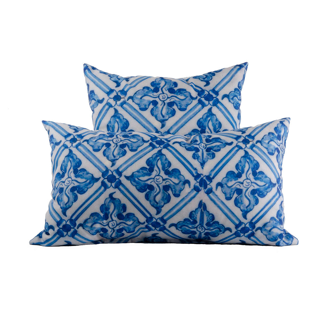 Recreated from an original tile from the fire boxes of Drayton Hall, this pattern is unusual in its repeating motif, known as Bloemruitjes (flower and diamond). This tile pattern is a rare archaeological find and may be the only example of this decorative motif found in North America. The fire boxes were once tiled completely in hand-painted delft tiles such as this. An elegant reminder of a visit to Drayton Hall.