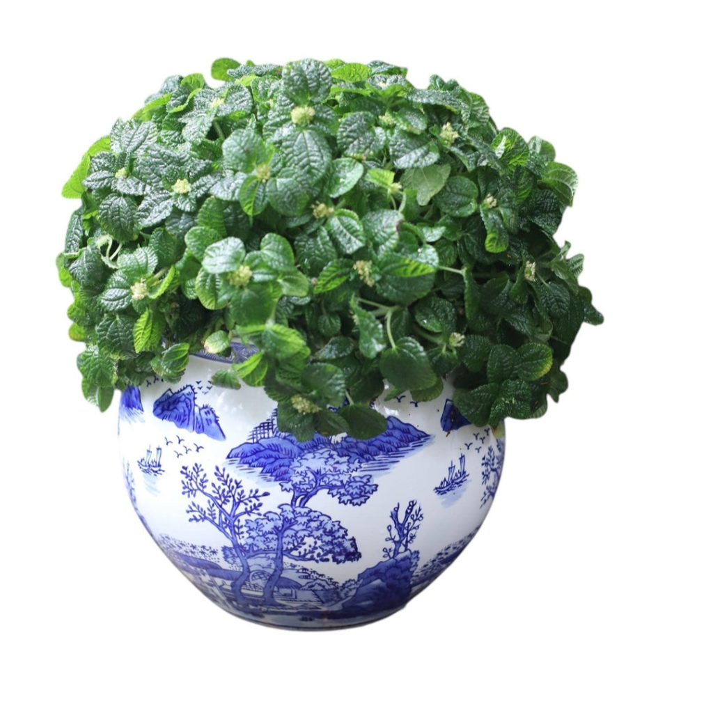 The traditional Chinoiserie patterns and colors of the Blue and White Landscape collection combined with a vintage aesthetic to bring culture and class into your home. The large 11-inch, deep planter is as aesthetically pleasing as it is functional as a planting pot for your living room or patio. The beautiful and artfully painted landscape decorates the entire piece in traditional blue and white watercolor, remaining true to its Oriental heritage.