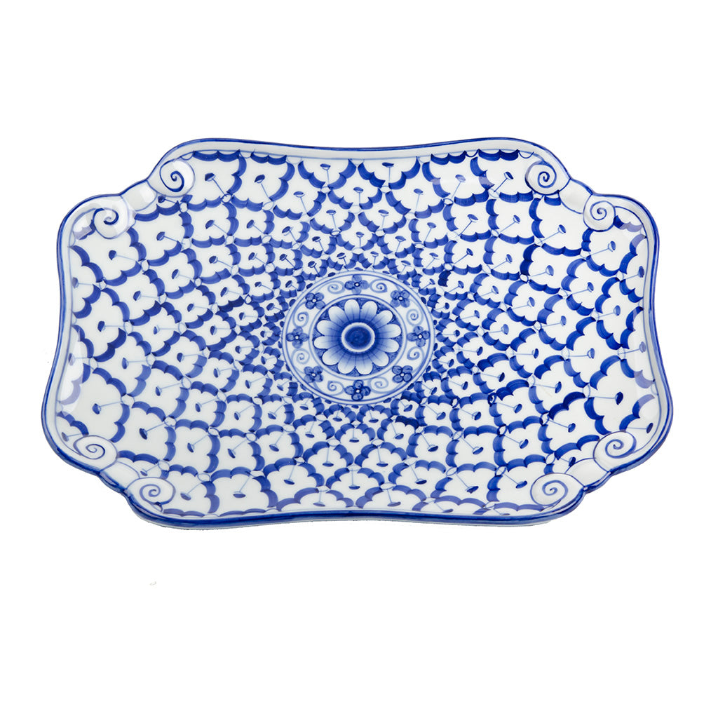 A true knockout piece, this hand-painted porcelain platter features a timeless and always popular pineapple pattern. With its graceful border and detailed all-over design, it’s both a stunning display piece and a versatile serving dish. Perfect to hang on the wall as art or to present your favorite dishes in style, this platter brings elegance to any setting.
