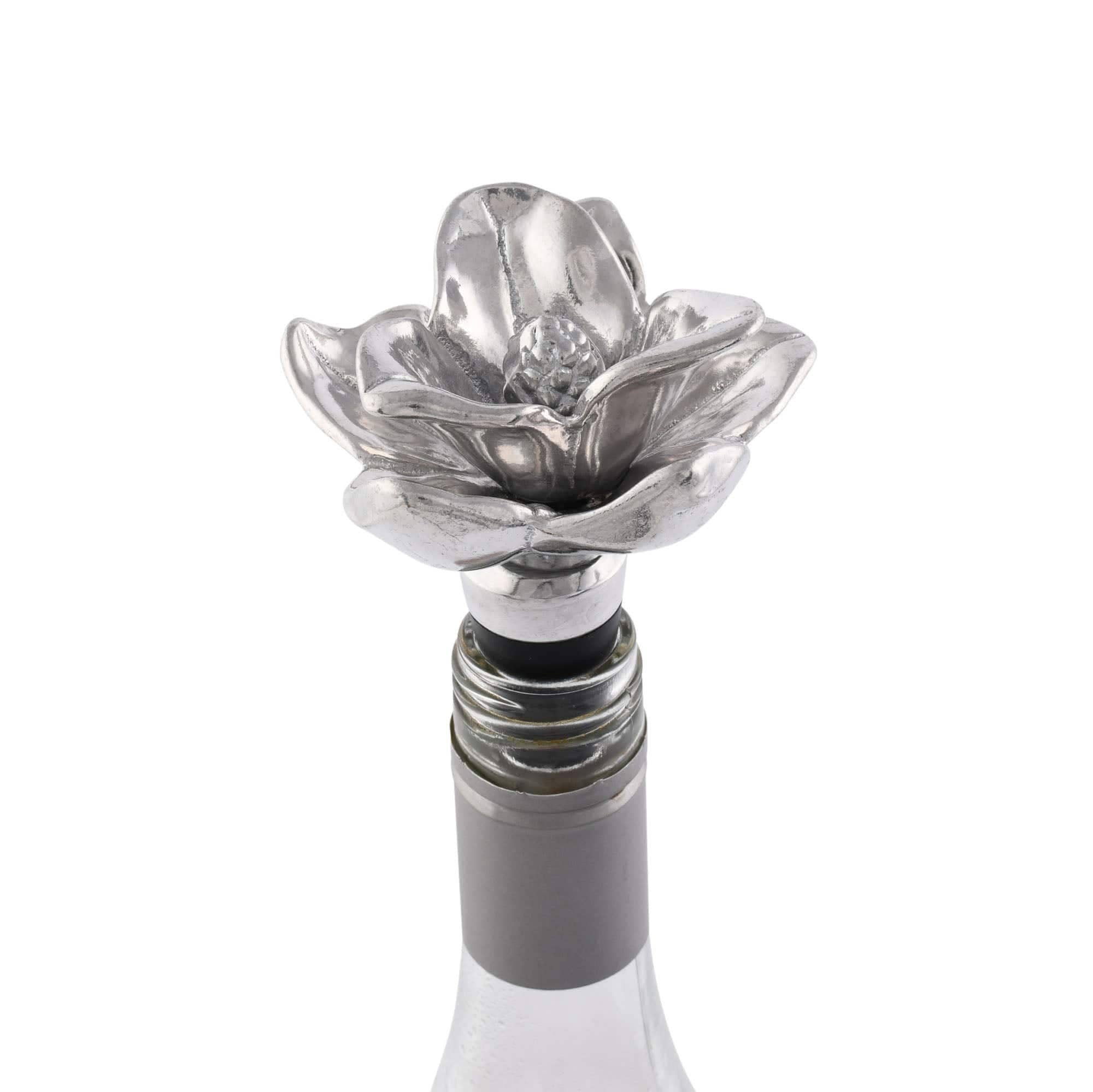 Keep the full aroma in every bottle with this elegant and beautifully detailed crafted bottle stopper with Magnolia motif. Each pure aluminum bottle stopper is finished with a rubber gasket to ensure the best storage for your carefully curated collection of spirits. Designed to work well with most bottles, the uniqueness of each stopper allows you to express your style as bar keep and entertainer.