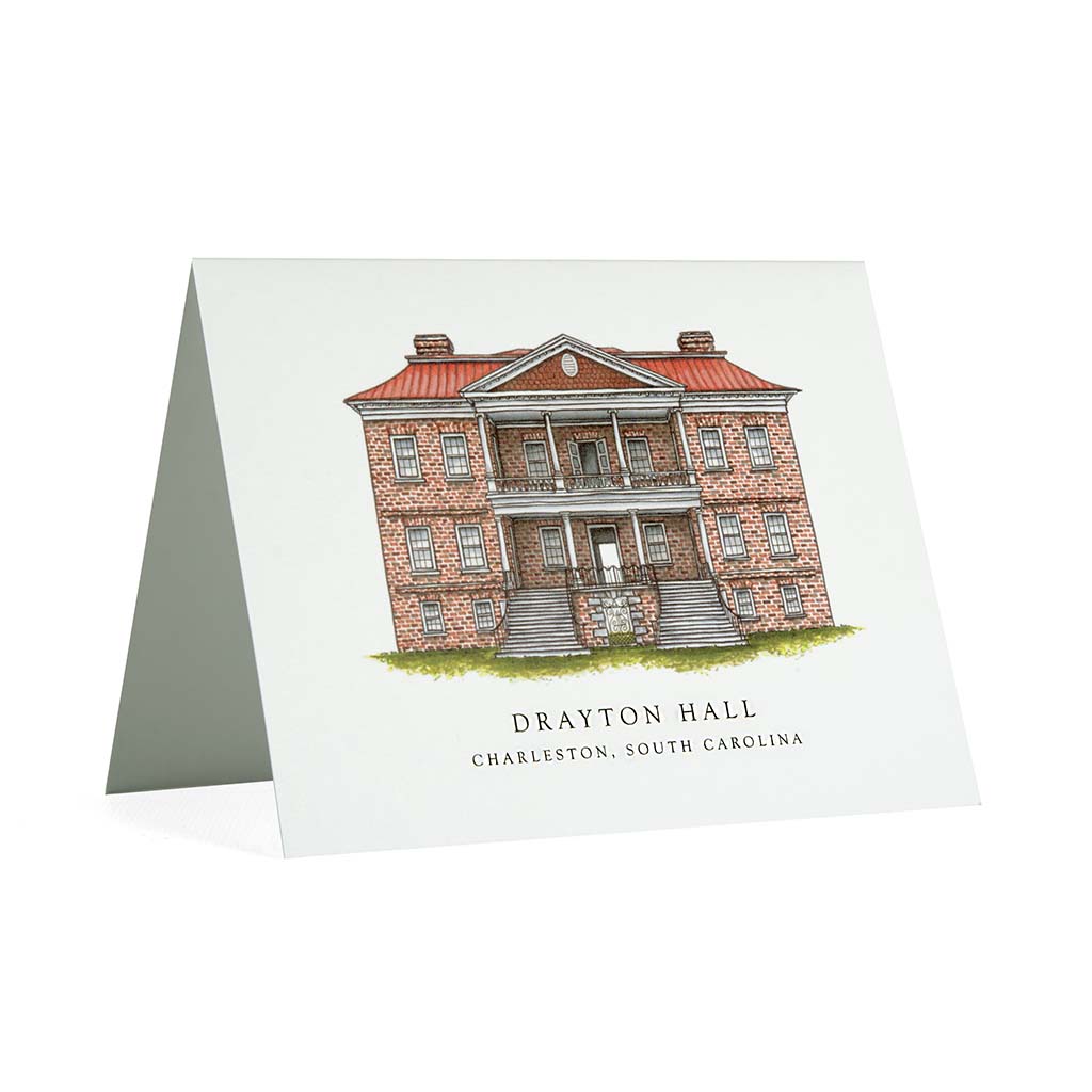 Created by local artist Emily Kirby, of Texture Design Co., this custom drawing of Drayton Hall graces the set of six note cards that are perfect for everyday correspondence or to tell your friends and family about your memorable visit to Drayton Hall.