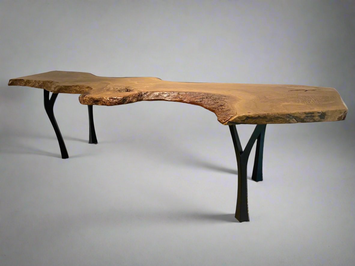 Locally made in Charleston, South Carolina by artist Hannah Robinson, this table comes from one of the larger branches of the historic garden oak. The artist chose to fill the voids with clear resin. The bowed shape of Live Oak branches like this one is the reason that shipwrights chose to use them for boatmaking, the natural curvature of these massive branches were used for the curved parts of the boats and the live oak's extreme density made the ships strong so that it could withstand heavy pressure from the wind and waves.