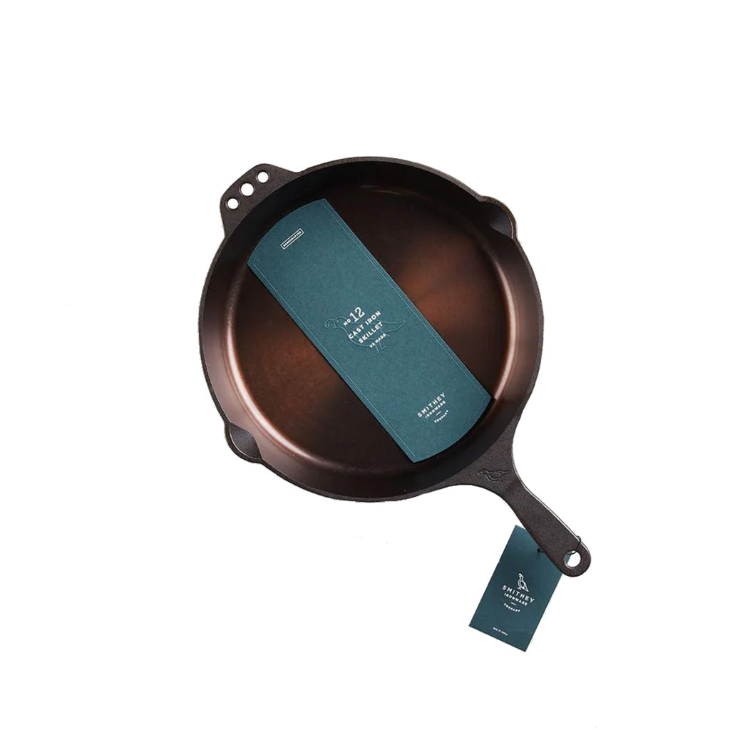 Locally made in Charleston, South Carolina, this Smithey 12" skillet is destined to be your family heirloom. The No. 12 is perfect for pan-frying chicken, searing steaks on the range, roasting game and vegetables in the oven, even baking biscuits. A daily companion in the kitchen, the No. 12 is also at home outdoors on the grill or over an open campfire. With a signature polished interior finish, the No. 12 when seasoned is naturally non-stick and free of chemical coatings. Inspired by vintage cast iron and crafted by hand and machine, it is believed to be the best cast-iron skillet on the market. Use it well.
