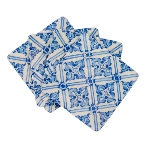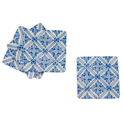 The Bloemruitjes Delft Tile design, an original tile from the fire boxes of Drayton Hall, this pattern is unusual in its repeating motif, known as Bloemruitjes (flower and diamond). This tile pattern is a rare archaeological find and may be the only example of this decorative motif found in North America. The fire boxes were once tiled completely in hand-painted delft tiles such as this. An elegant reminder of a visit to Drayton Hall.