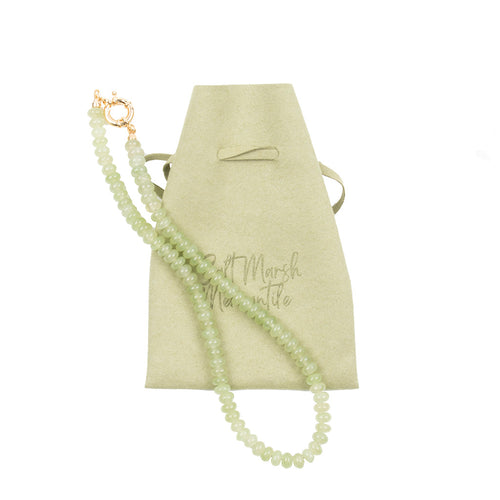 Handcrafted by Charleston local jewelry designer, Sophia Hastings of Saltmarsh Mercantile.  This exclusive custom necklace is inspired by the paint color in the Great Hall of Drayton Hall and features authentic gemstone beads sourced from India.