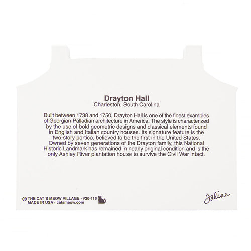 Drayton Hall is one of the finest examples of Georgian-Palladian architecture in the United States, and Custom Wood Gifts has created a wooden replica of Drayton Hall which includes the majestic and architecturally significant Palladian portico that is both projecting from and recessed into the house.