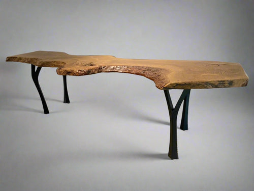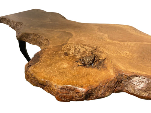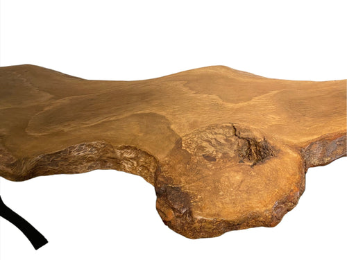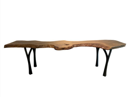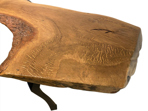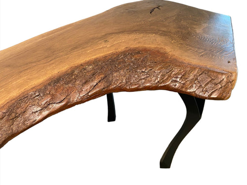 Locally made in Charleston, South Carolina by artist Hannah Robinson, this table comes from one of the larger branches of the historic garden oak. The artist chose to fill the voids with clear resin. The bowed shape of Live Oak branches like this one is the reason that shipwrights chose to use them for boatmaking, the natural curvature of these massive branches were used for the curved parts of the boats and the live oak's extreme density made the ships strong so that it could withstand heavy pressure from the wind and waves.