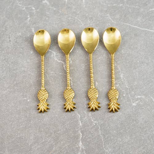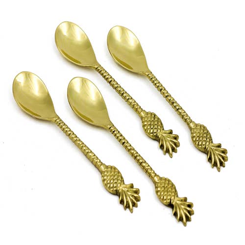 Golden Pineapple Hors d'Oeuvres Spoon Expertly crafted and beautifully designed, this hors d'oeuvres spoon adds a touch of luxury to your dining experience. Made with solid stainless steel, it is both durable and elegant, elevating your serving style. You can impress your guests with the beautiful golden pineapple design, while also using it to easily serve your favorite sauces & jams during hors d'oeuvres hour.