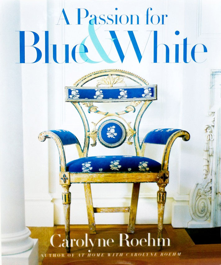 From the time designer Carolyne Roehm rented her first small apartment in New York in her twenties, she has loved blue and white. In that one-bedroom flat, she draped the walls, chairs, sofa, and a canopy bed in an inexpensive blue and white sheeting fabric designed by her boss, Oscar de la Renta, and began collecting blue-and-white porcelain from around the world—initially bargain reproductions and eventually museum-quality pieces—from China, Japan, Portugal, the Netherlands, and elsewhere.