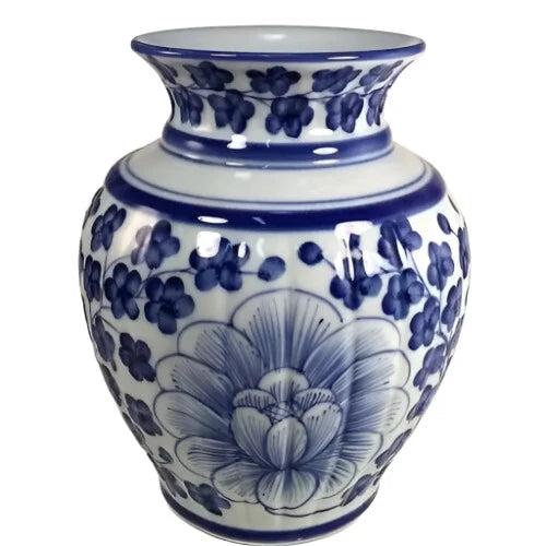 This vase features a beautiful blue and white design accented with delicate coriander flowers. The elegant and timeless design will add a touch of sophistication to any home decor. Made from high-quality materials, this vase is durable and built to last. Its intricate details are sure to impress and make a statement in any room. Whether used for holding flowers or simply as an eye-catching decorative piece, this vase will surely be a stunning addition to your home.
