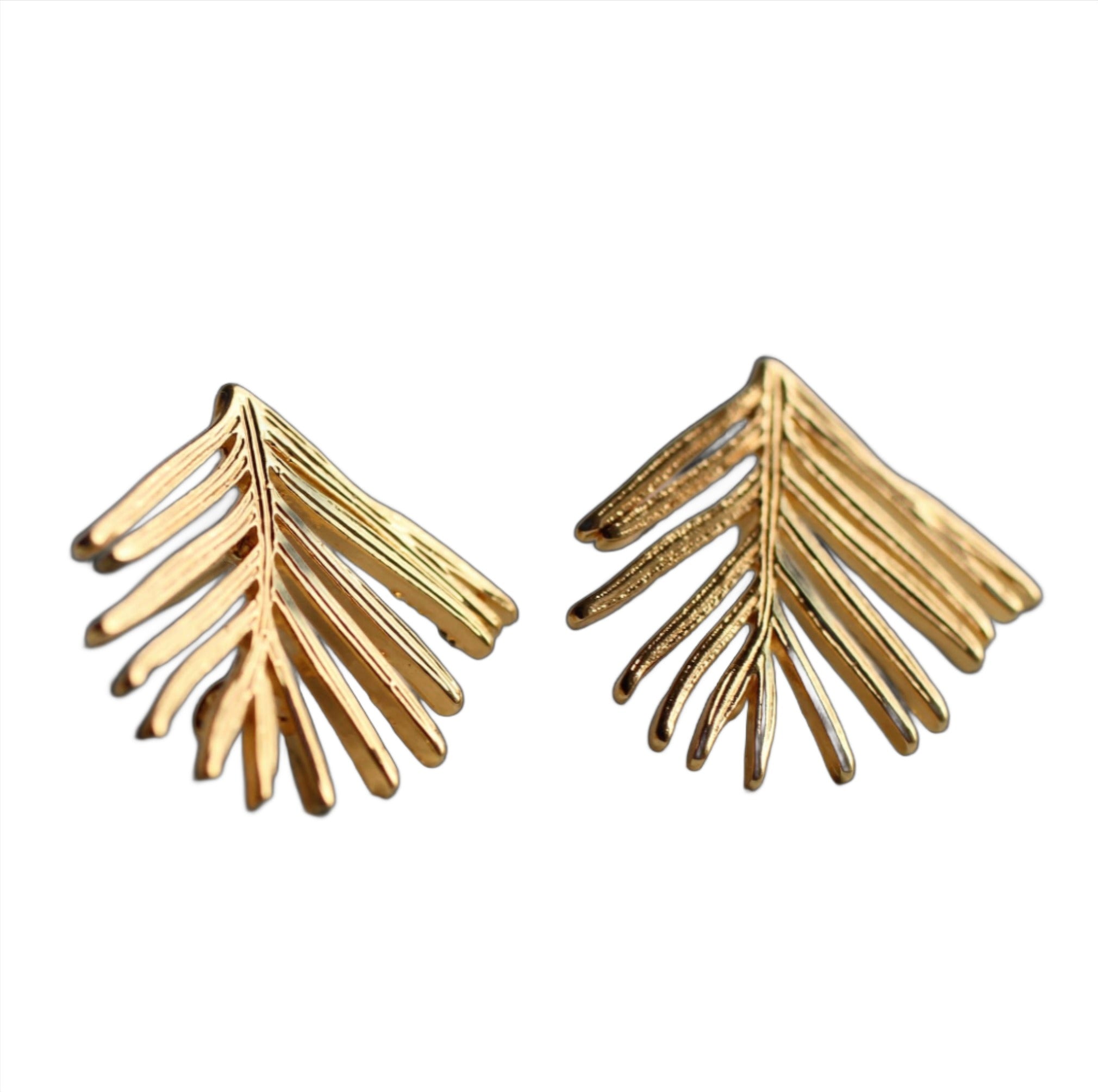 The leaf earrings are gold plated brass and measure 20mm (just less than one inch) at their widest points, so are slightly oversized.
