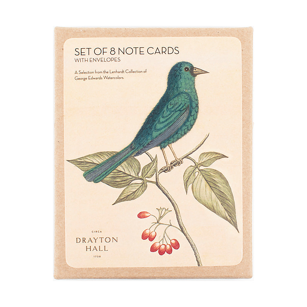 Small Birds - This set of eight assorted notecards features four images from the Lenhardt Collection of George Edwards Watercolors: Indigo Bunting, Hummingbirds, Yellow Bellied Sapsucker and the American Goldfinch.