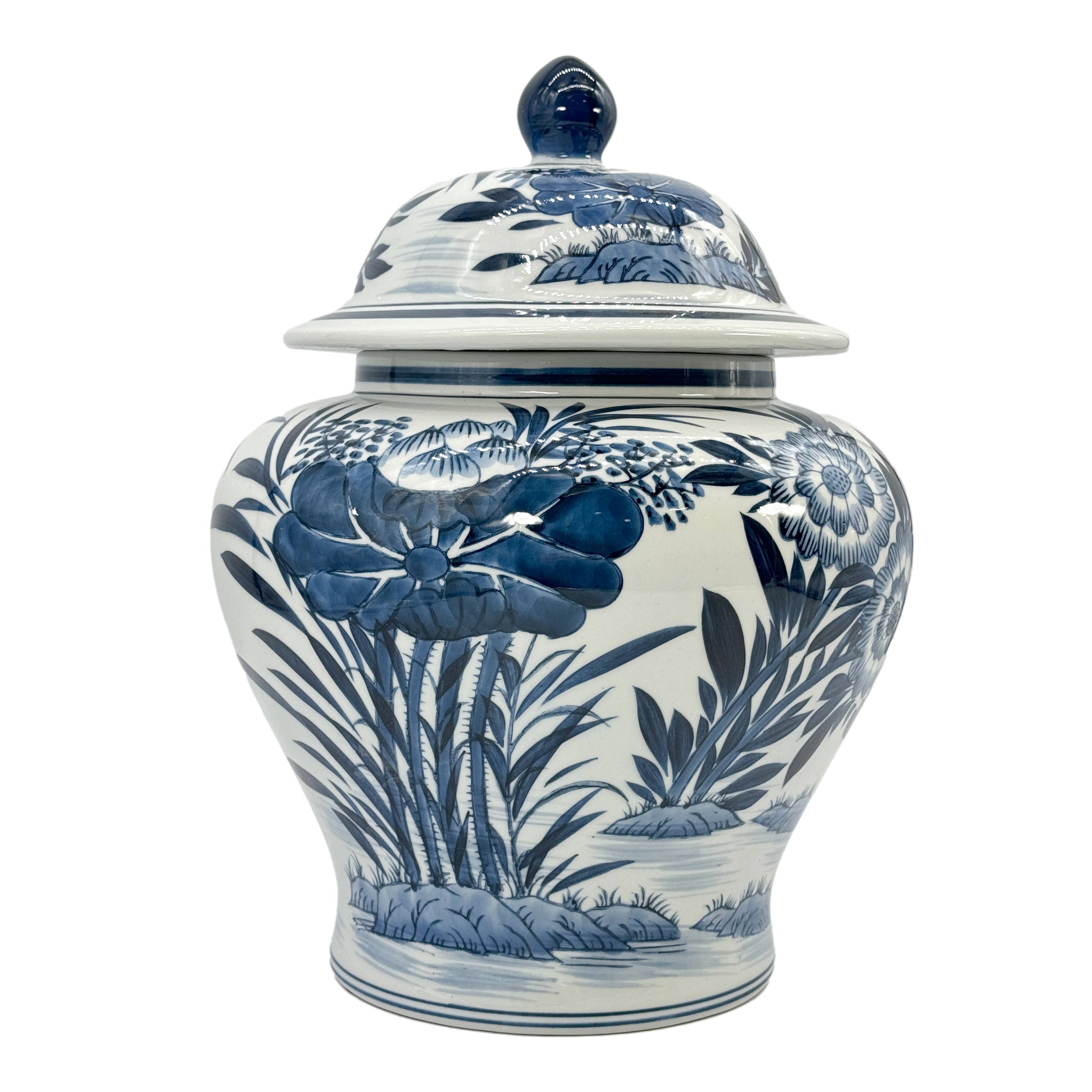 Introduce classic beauty into your home decor with this 15.5" Blue & White Bamboo Floral Ginger Jar. This magnificent jar, adorned with intricate bamboo floral patterns in blue and white, is crafted to bring an air of sophistication and timeless beauty to any interior space. Versatility is a hallmark of this ginger jar. Whether placed on tabletops, showcased on mantels, or standing as a standalone accent, it effortlessly elevates the aesthetic appeal of various interior settings. Its 15.5" size ensures it stands out as a focal point or complements your existing decor harmoniously. Crafted from high-quality ceramic, this jar embodies a perfect blend of durability and visual allure. Its sturdy construction ensures it remains an enduring and stunning addition to your home decor, promising long-lasting beauty and charm. The distinctive blue and white bamboo floral design is the standout feature of this ginger jar. Its captivating aesthetics add character and flair.