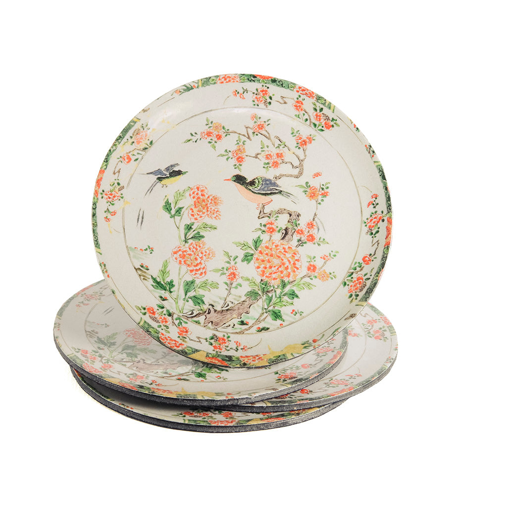 The large Chinese-export porcelain dish is decorated with translucent enamels in the color palette now referred to as "famille verte" or "green family". The central scene displays two birds, one in flight and another perched on a flowering branch. The early date of the dish (1662-1722) may indicate that it first belonged to John Drayton's parents, Thomas and Ann Drayton and possibly signifies a family appreciation of fine Chinese-export porcelains passed on to John Drayton as he established his own home; the dish descended in the Drayton family and was acquired by the Drayton Hall Preservation Trust in 2016.