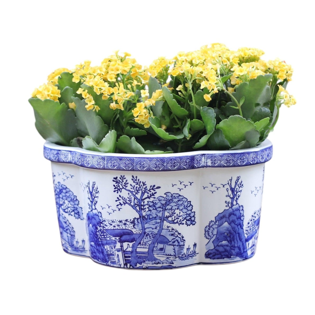 The traditional Chinoiserie patterns and colors of the Blue and White Landscape collection combine with a vintage aesthetic to bring culture and class into your home. The large 13.25-inch, deep planter is as aesthetically pleasing as it is functional as a planting pot for your living room or patio. The beautiful and artfully painted landscape decorates the entire piece in traditional blue and white watercolor, remaining true to its Oriental heritage.