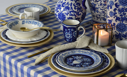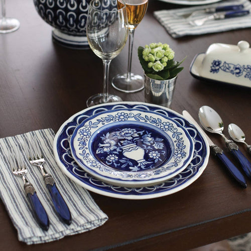 Elegant and sophisticated, the Blue Garden Collection is lovingly painted by hand with every attention paid to detail and quality. While playing on classic sensibilities of blue and white innate to Chinese ceramics, Blue Garden brings the trend into the modern era with its scalloped sturdy stoneware body and playful floral pattern. The line is completed by a full range of accessories for a lovely, striking blue and white table setting.