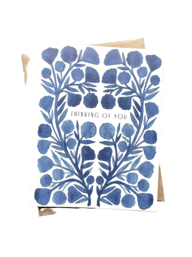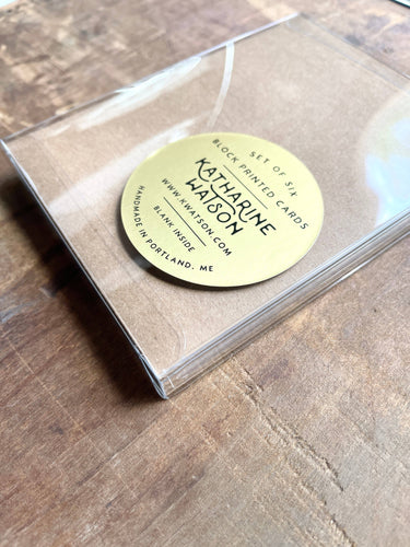 A Katharine Watson offset printed card, printed on 100lb cream cardstock. Each card is a standard A2 size, 5 ½” by 4 ¼”, is blank on the inside, and comes with a 100% recycled kraft envelope. For her offset printed cards, Katharine begins each greeting card design with a sketch, watercolor painting or hand-carved linoleum block, which is digitally translated and later, individually printed.